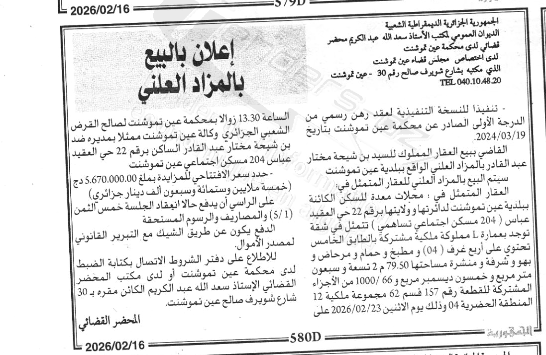 Il sera procédé à la vente au plus offrant et dernier enchérisseur le :
