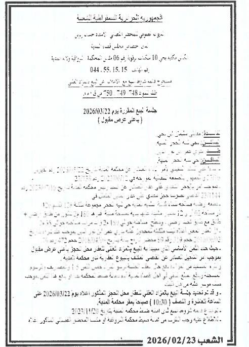 Il sera procédé à la vente au plus offrant et dernier enchérisseur le :