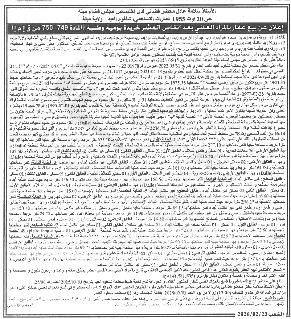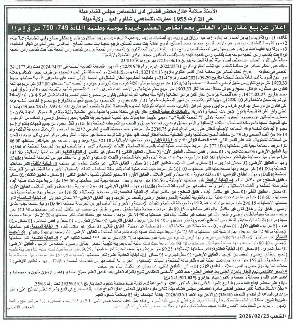 Il sera procédé à la vente au plus offrant et dernier enchérisseur le :