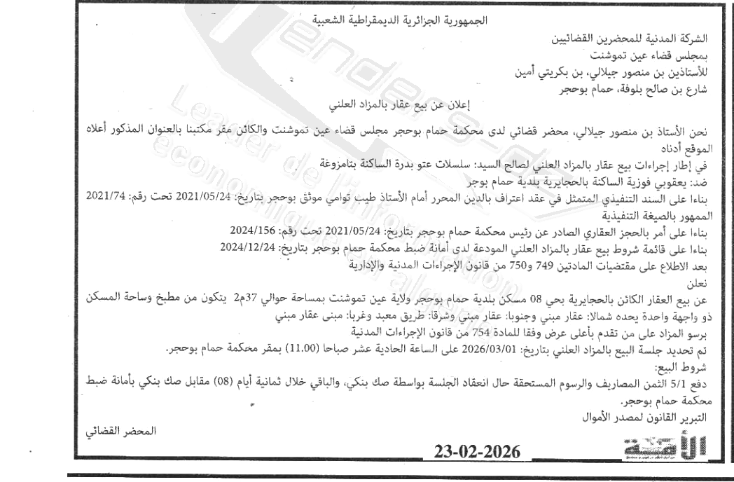 Il sera procédé à la vente au plus offrant et dernier enchérisseur le :