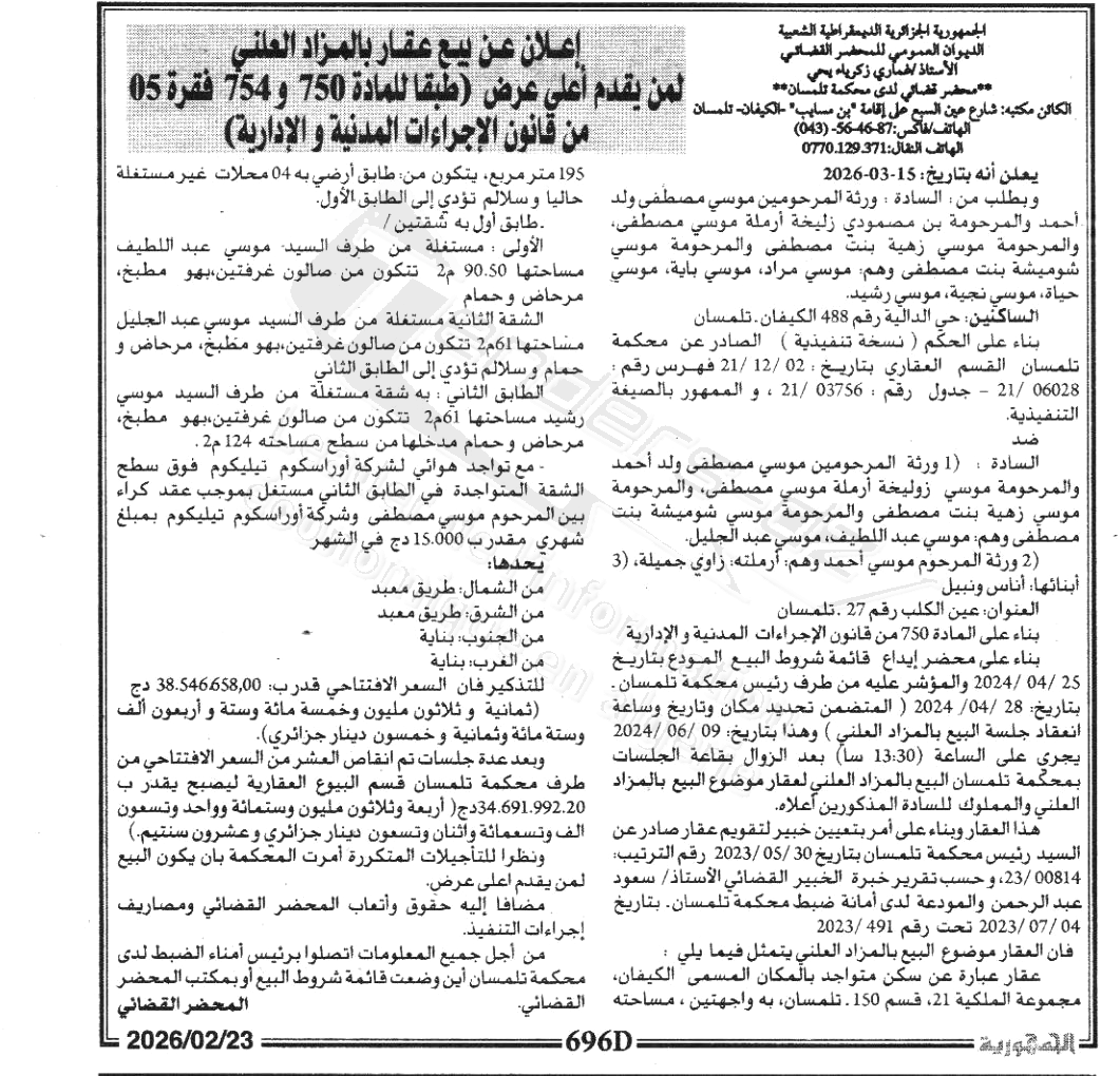 Il sera procédé à la vente au plus offrant et dernier enchérisseur le :