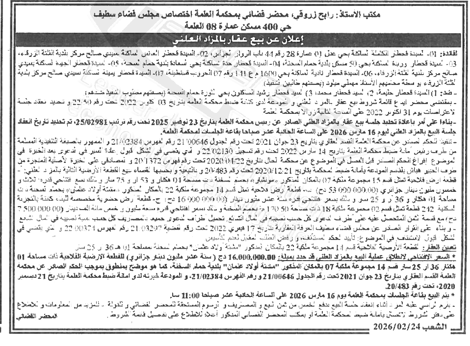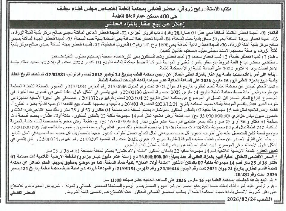 Il sera procédé à la vente au plus offrant et dernier enchérisseur le :