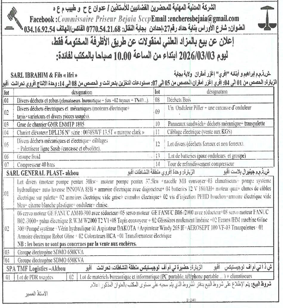 | Objet: Vente divers équipements et matériels | |