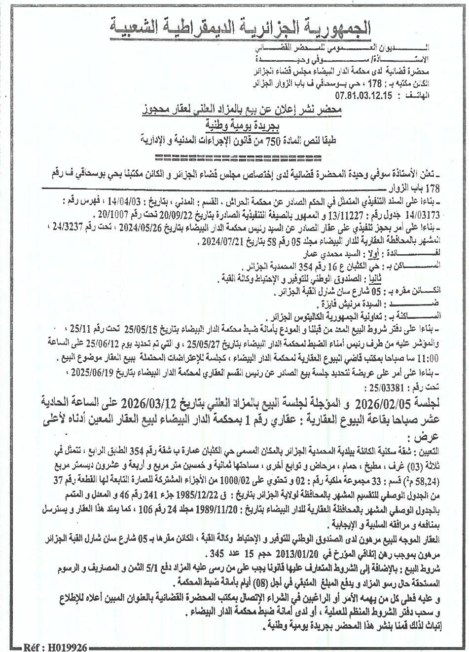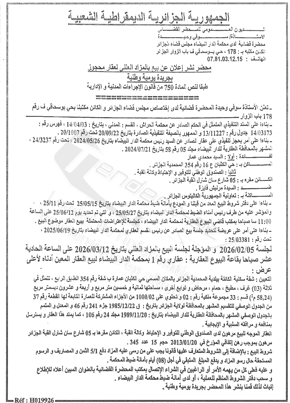 Il sera procédé à la vente au plus offrant et dernier enchérisseur le :
