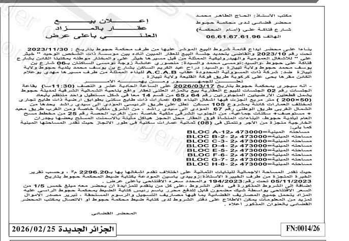 | Paru dans le journal : الجزائر الجديدة | |