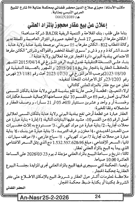 Il sera procédé à la vente au plus offrant et dernier enchérisseur le :