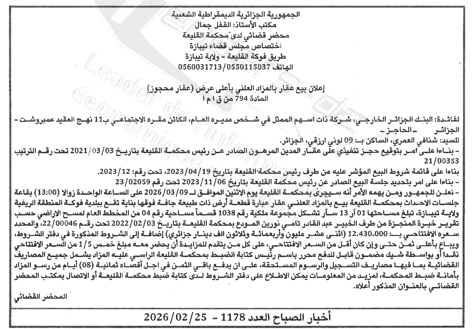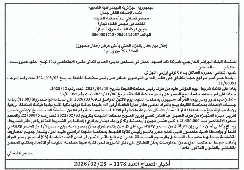 Il sera procédé à la vente au plus offrant et dernier enchérisseur le :