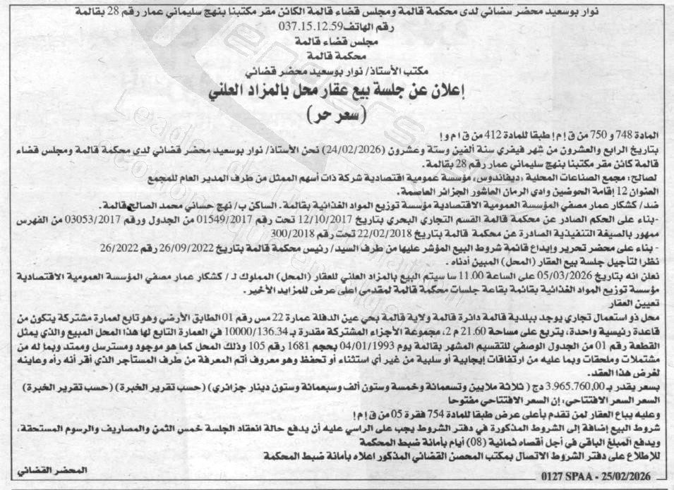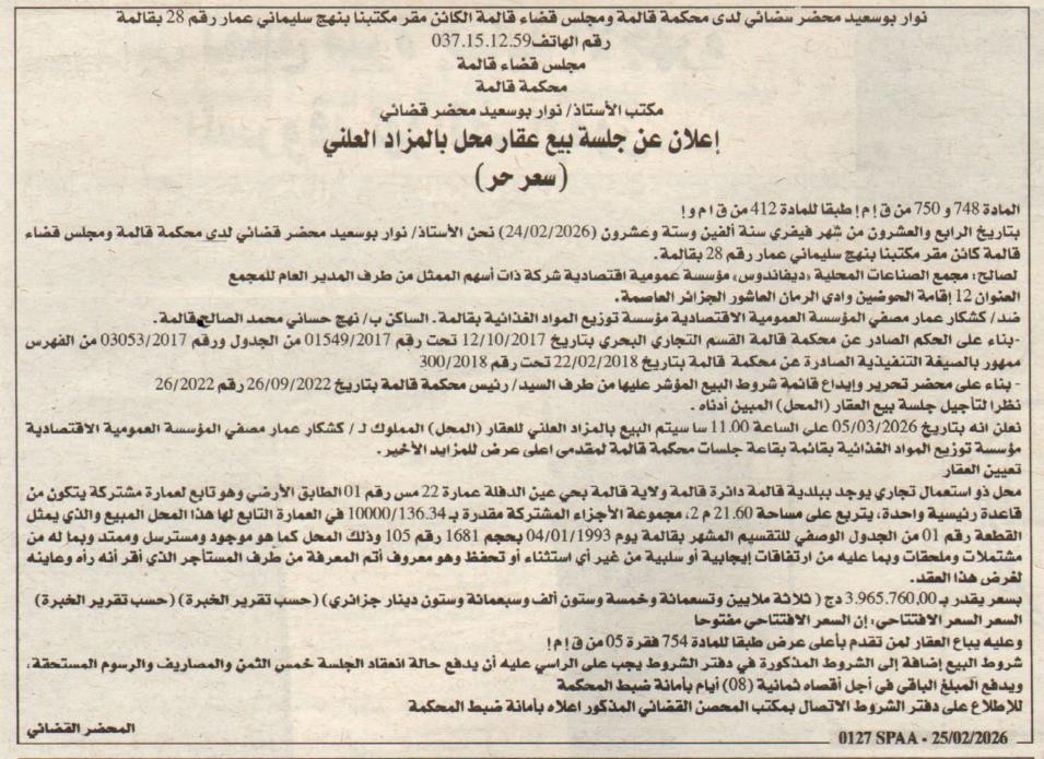 Il sera procédé à la vente au plus offrant et dernier enchérisseur le :