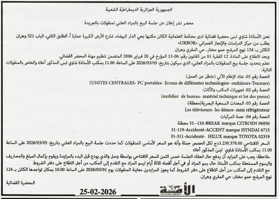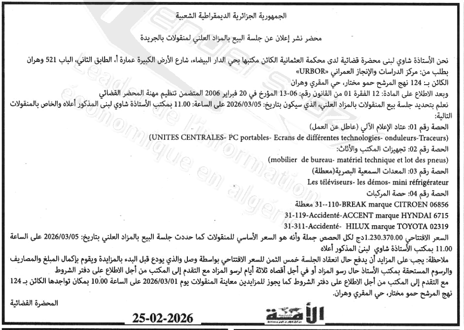Il sera procédé à la vente au plus offrant et dernier enchérisseur le :