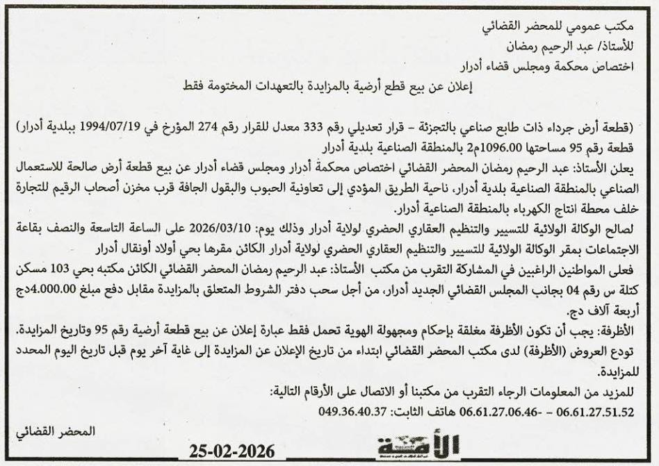 Il sera procédé à la vente au plus offrant et dernier enchérisseur le :