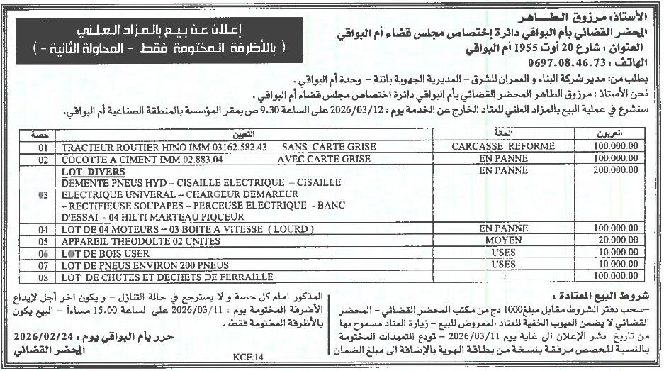 Il sera procédé à la vente au plus offrant et dernier enchérisseur le :