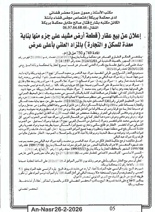 | Paru dans le journal : النصر | |