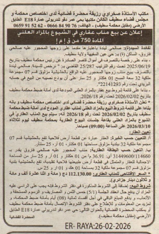 Il sera procédé à la vente au plus offrant et dernier enchérisseur le :