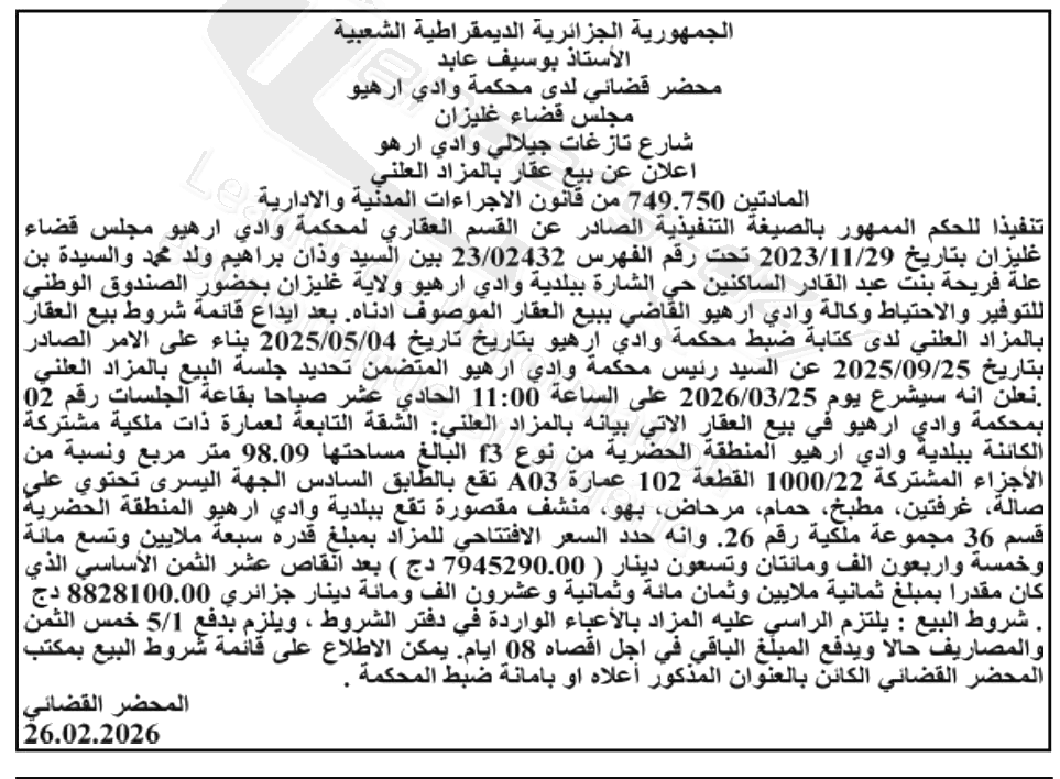 Il sera procédé à la vente au plus offrant et dernier enchérisseur le :