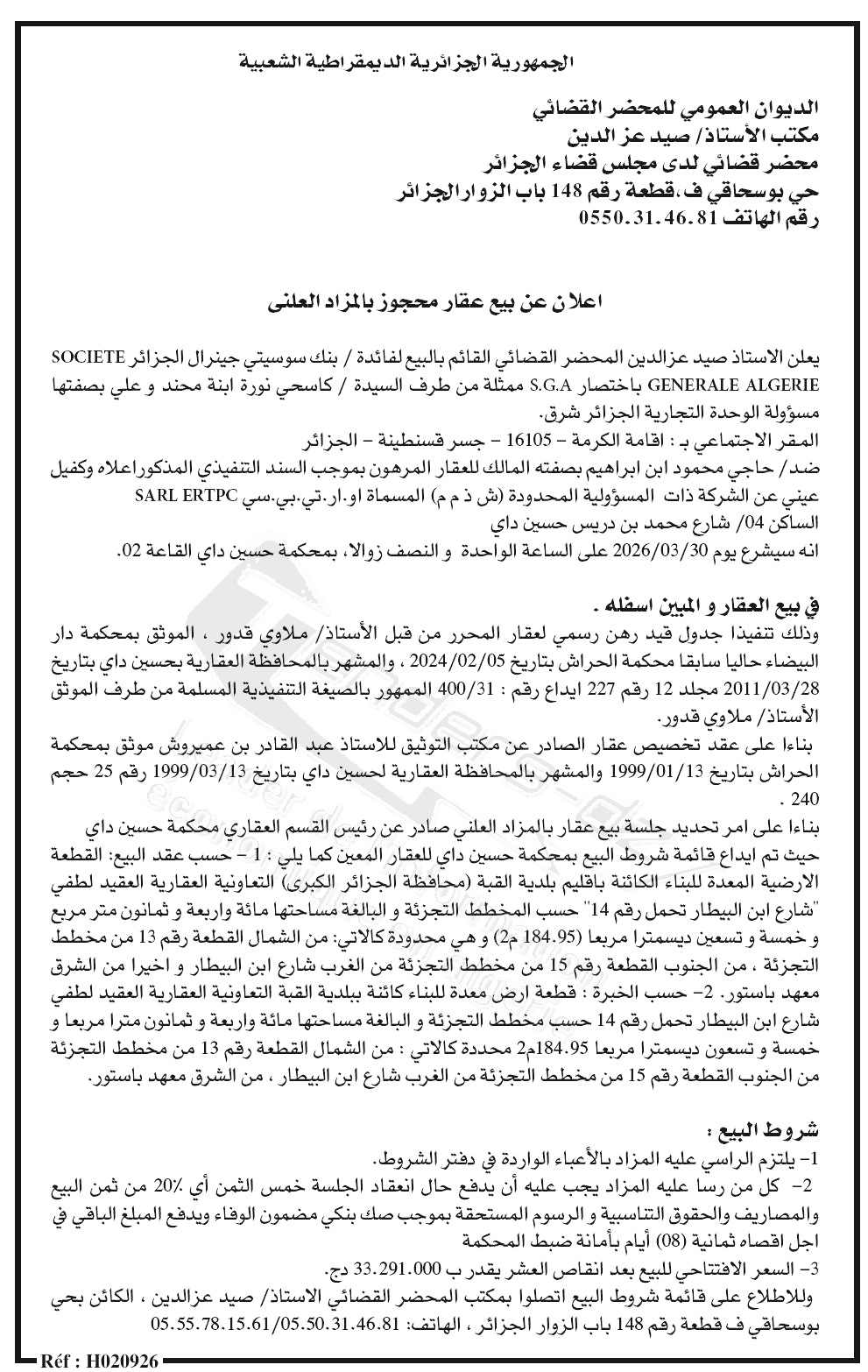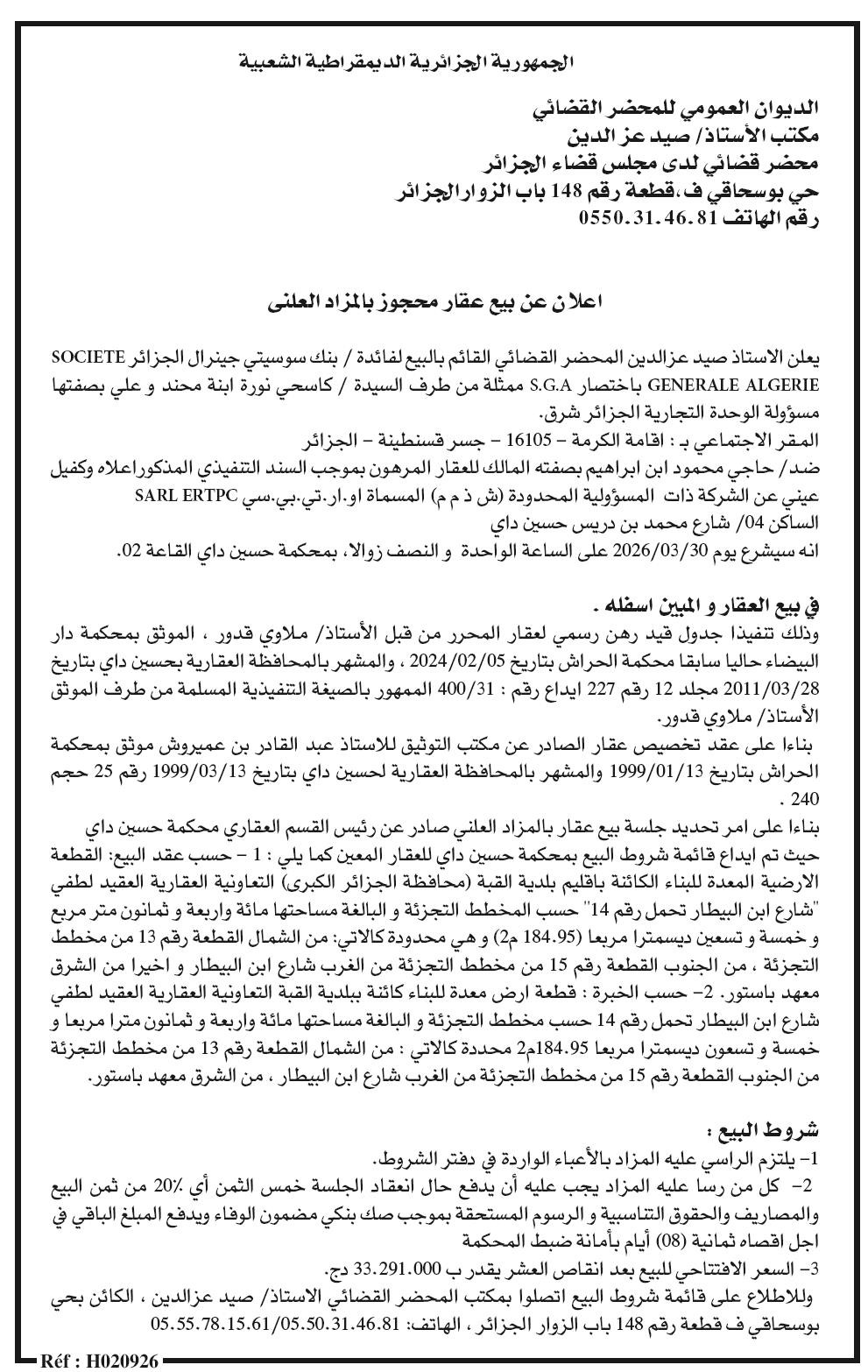 Il sera procédé à la vente au plus offrant et dernier enchérisseur le :
