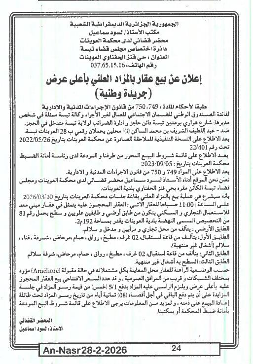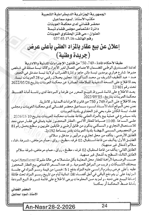 | Paru dans le journal : النصر | |