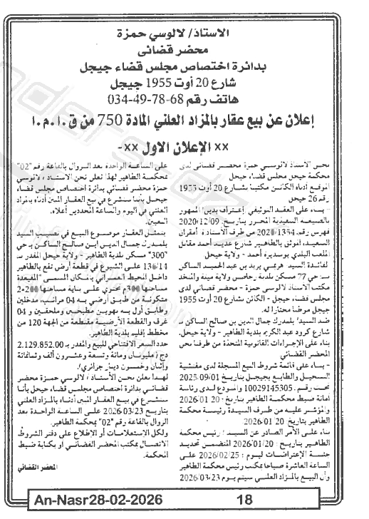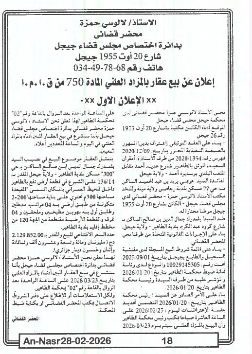 | Paru dans le journal : النصر | |