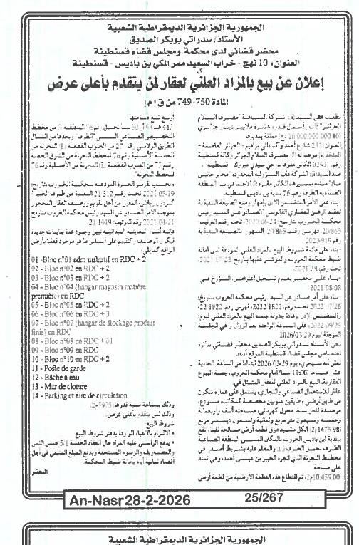 Paru dans le journal : النصر
