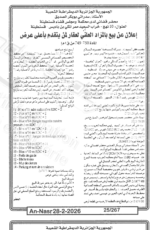 Il sera procédé à la vente au plus offrant et dernier enchérisseur le : 07/03/2026';
