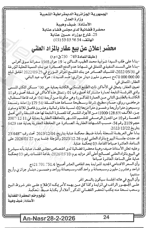 | Paru dans le journal : النصر | |