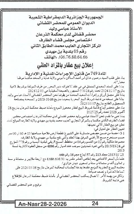 | Paru dans le journal : النصر | |