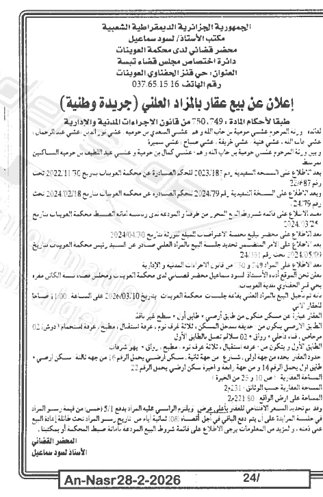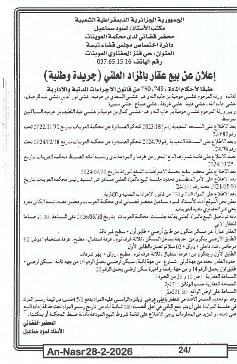 Il sera procédé à la vente au plus offrant et dernier enchérisseur le :