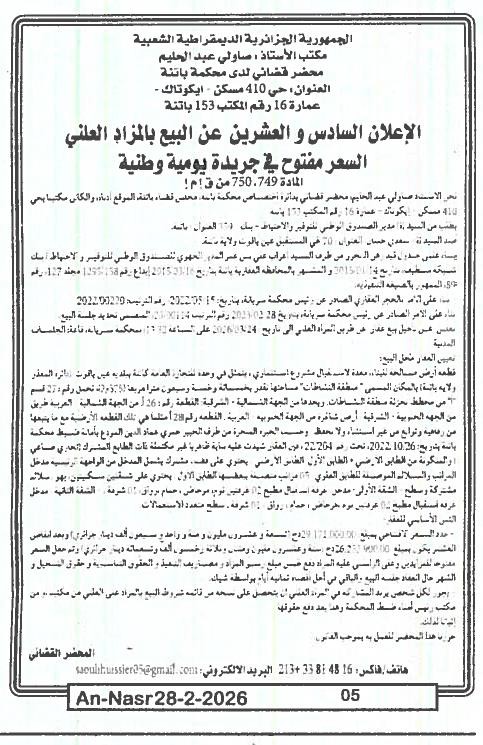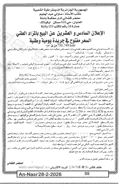 | Paru dans le journal : النصر | |