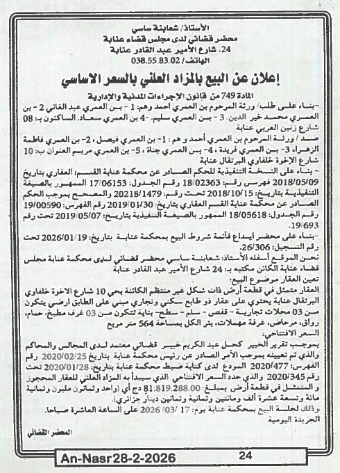 | Paru dans le journal : النصر | |