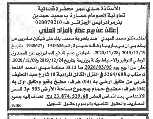 Il sera procédé à la vente au plus offrant et dernier enchérisseur le :