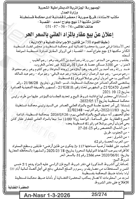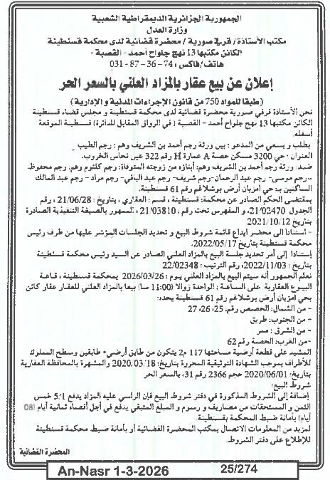 | Paru dans le journal : النصر | |