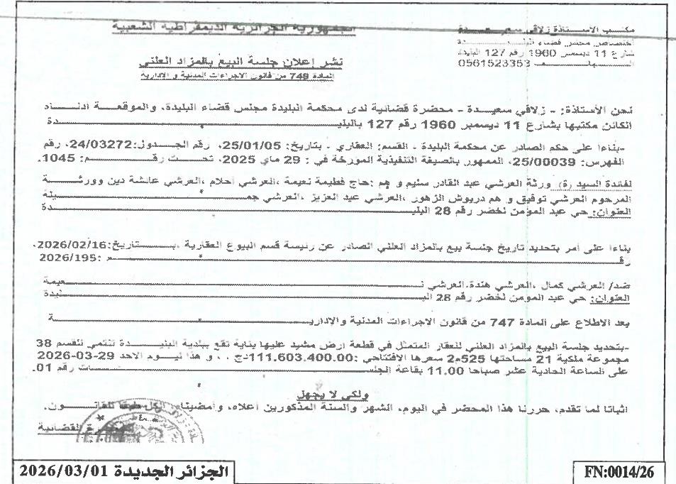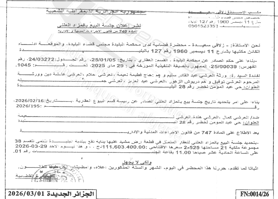 Il sera procédé à la vente au plus offrant et dernier enchérisseur le :