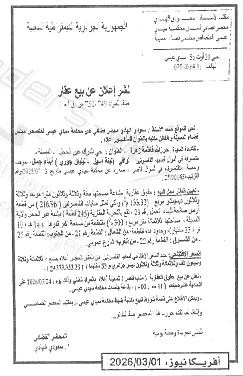 Il sera procédé à la vente au plus offrant et dernier enchérisseur le :