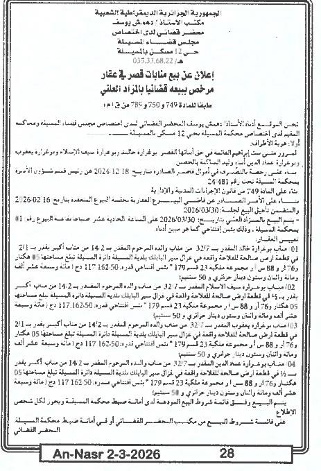 | Paru dans le journal : النصر | |