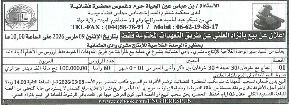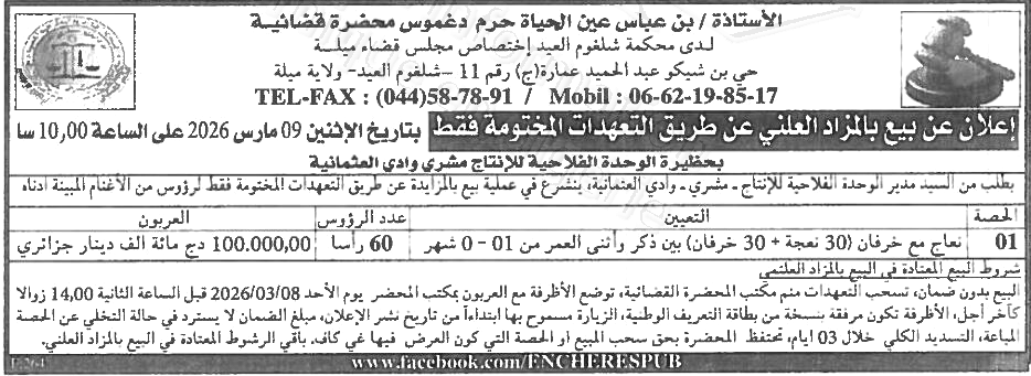 Il sera procédé à la vente au plus offrant et dernier enchérisseur le :