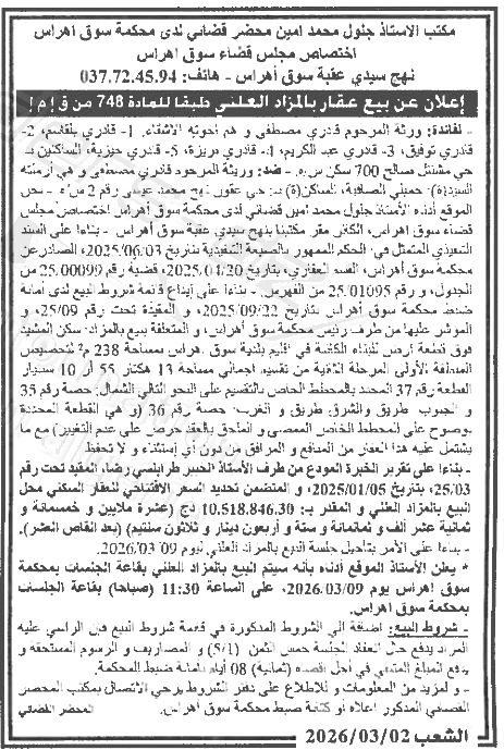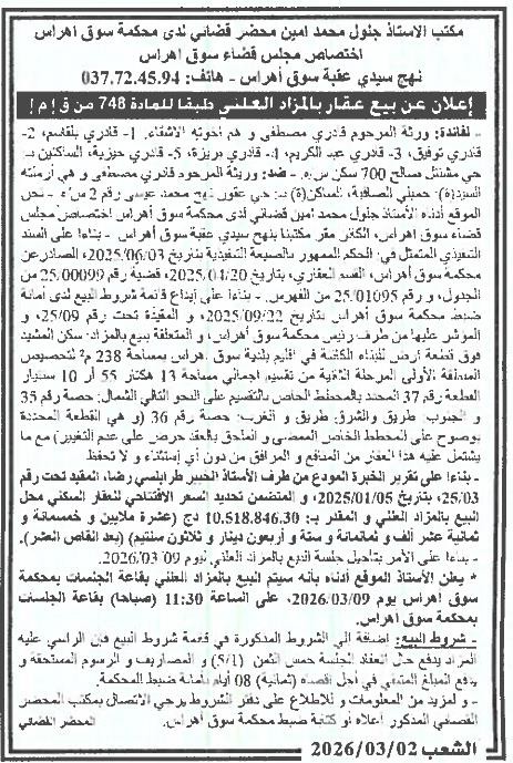 Il sera procédé à la vente au plus offrant et dernier enchérisseur le :
