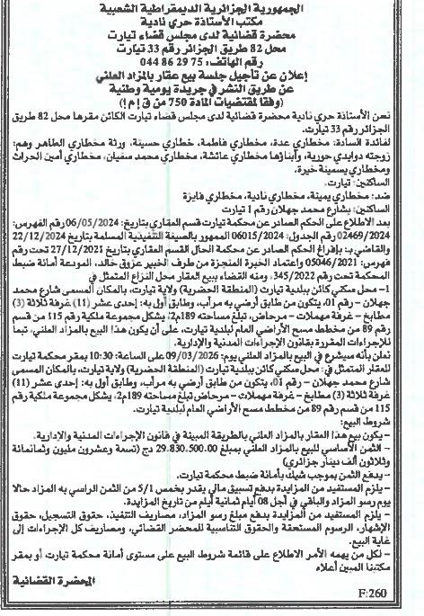 Il sera procédé à la vente au plus offrant et dernier enchérisseur le :