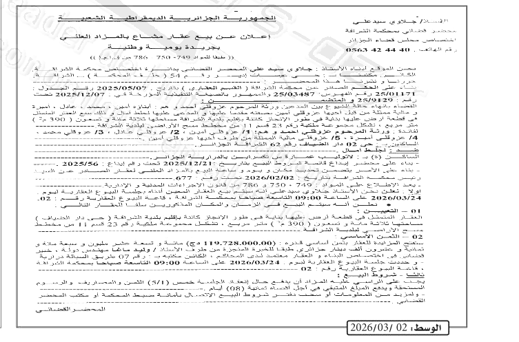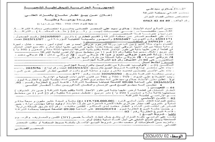 Il sera procédé à la vente au plus offrant et dernier enchérisseur le :