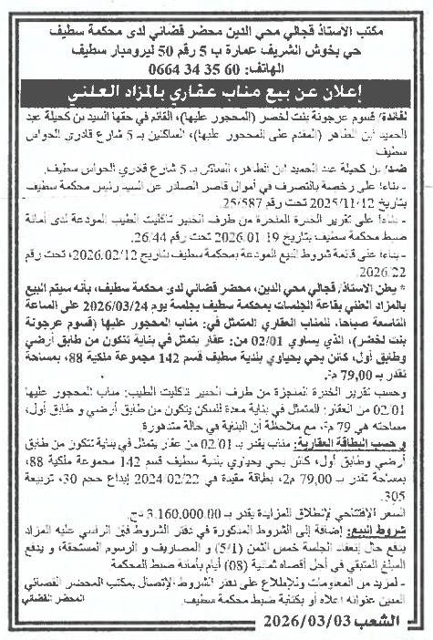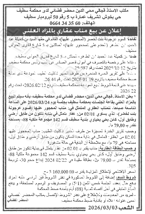 Il sera procédé à la vente au plus offrant et dernier enchérisseur le :
