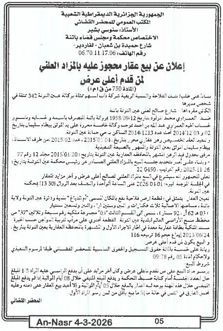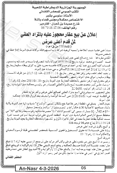 Il sera procédé à la vente au plus offrant et dernier enchérisseur le :