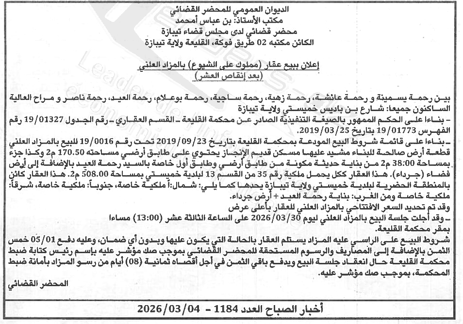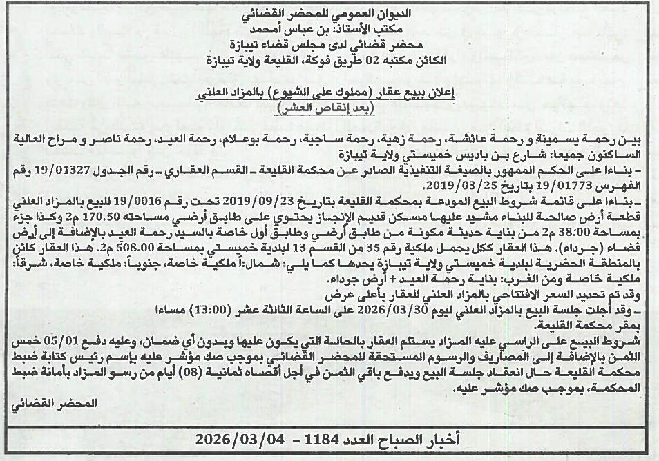 Il sera procédé à la vente au plus offrant et dernier enchérisseur le :