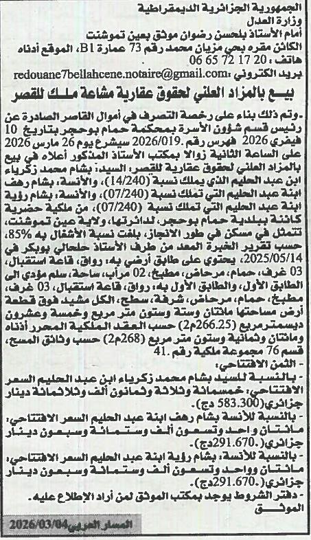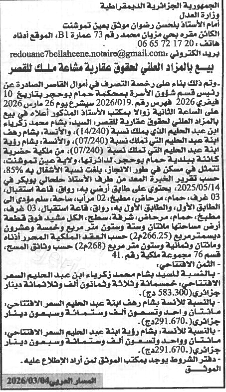 Il sera procédé à la vente au plus offrant et dernier enchérisseur le :