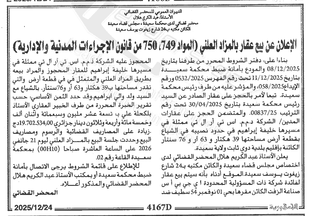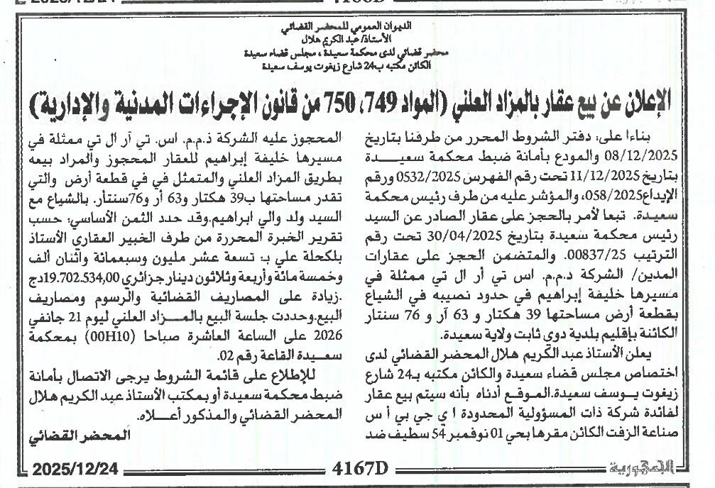 Il sera procédé à la vente au plus offrant et dernier enchérisseur le :