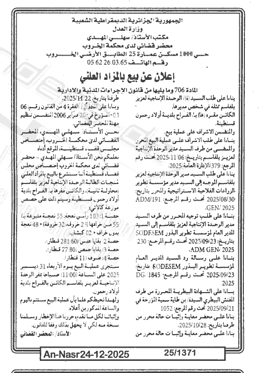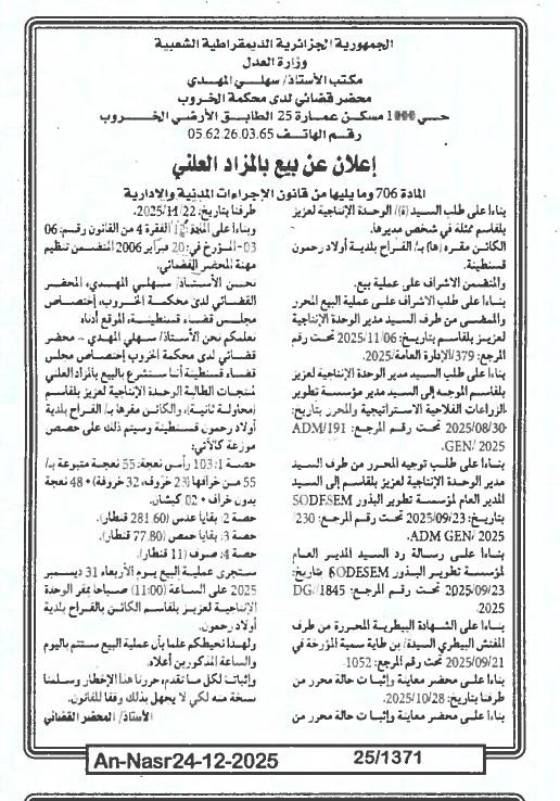 Il sera procédé à la vente au plus offrant et dernier enchérisseur le :