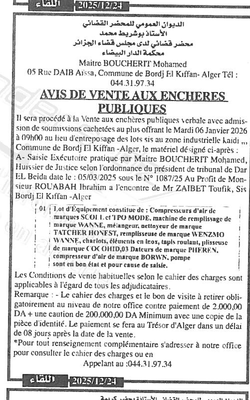 Il sera procédé à la vente au plus offrant et dernier enchérisseur le :