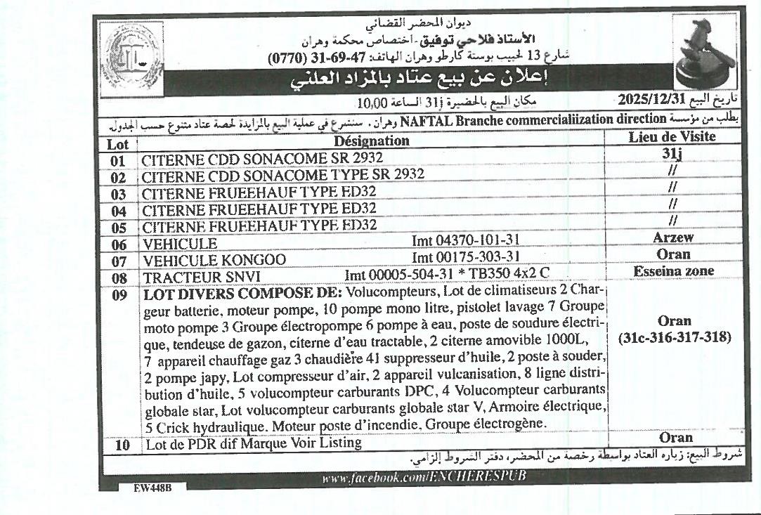 | Objet: Vente de divers équipements et véhicules | |