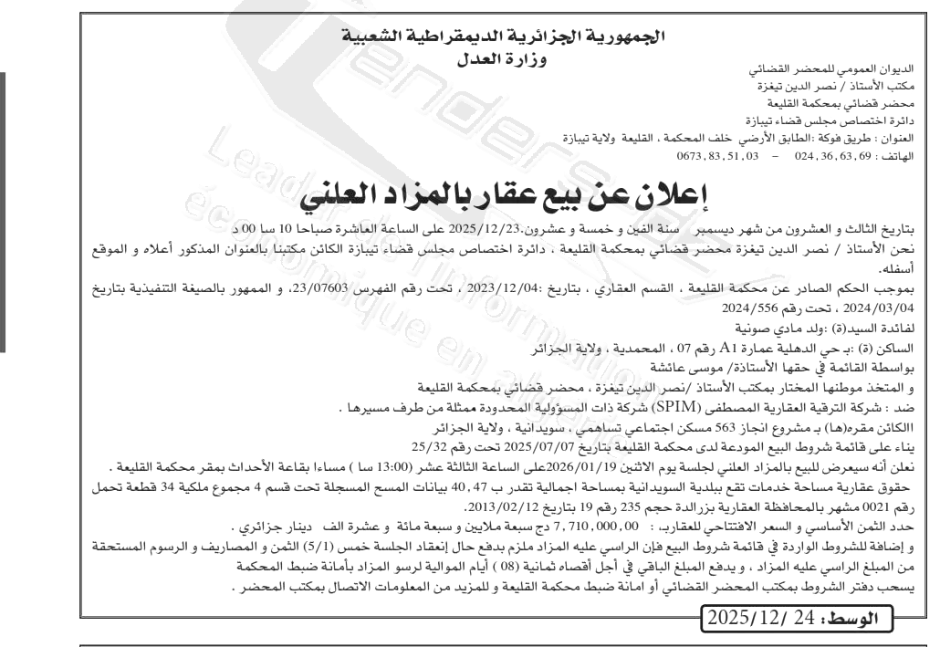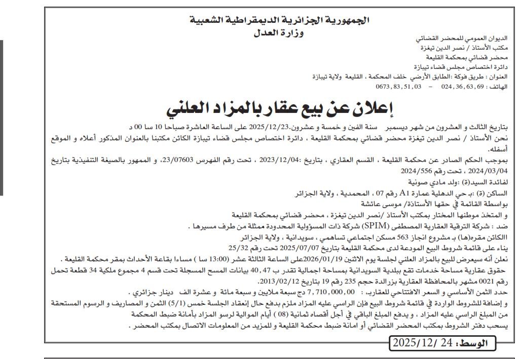 Il sera procédé à la vente au plus offrant et dernier enchérisseur le :
