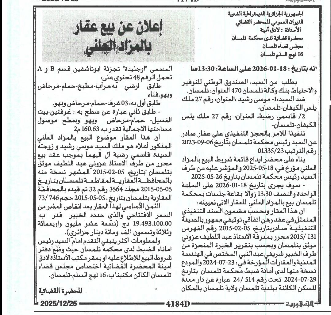 Il sera procédé à la vente au plus offrant et dernier enchérisseur le :