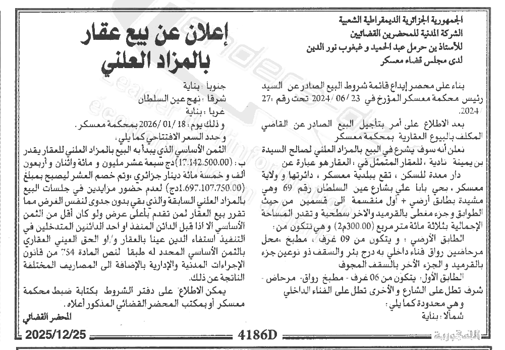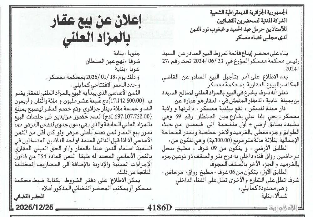 Il sera procédé à la vente au plus offrant et dernier enchérisseur le :