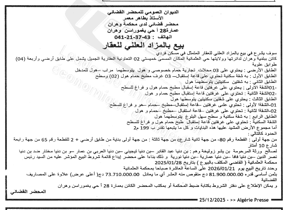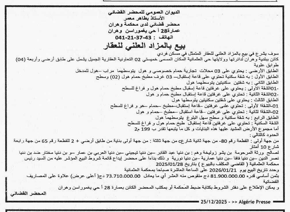 Il sera procédé à la vente au plus offrant et dernier enchérisseur le :