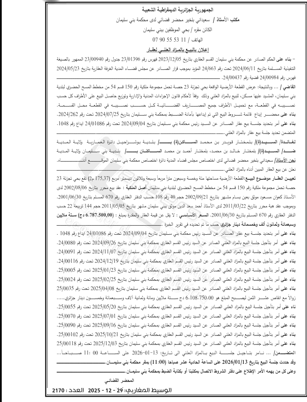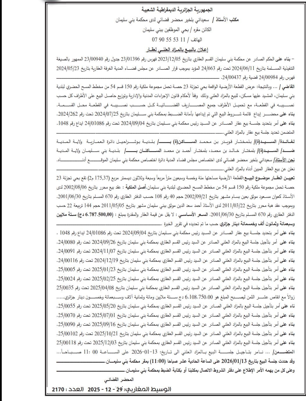 Il sera procédé à la vente au plus offrant et dernier enchérisseur le :